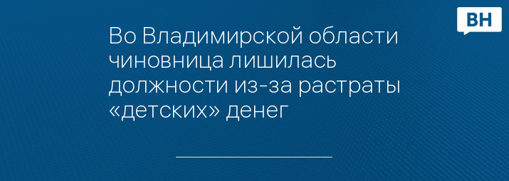 Во Владимирской области чиновница лишилась должности из-за растраты «детских» денег