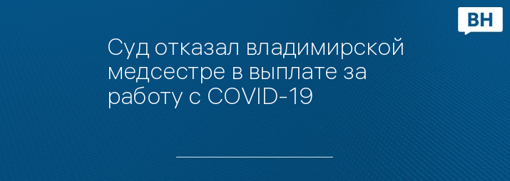 Суд отказал владимирской медсестре в выплате за работу с COVID-19
