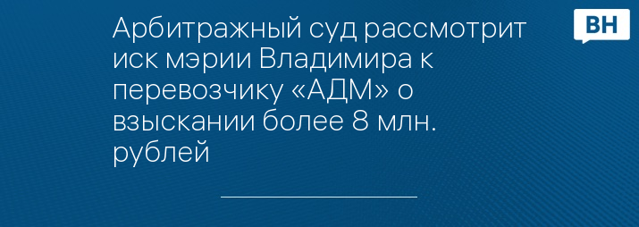 Арбитражный суд рассмотрит иск мэрии Владимира к перевозчику «АДМ» о взыскании более 8 млн. рублей