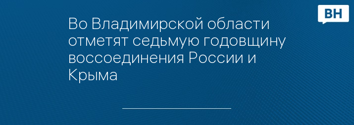 Во Владимирской области отметят седьмую годовщину воссоединения России и Крыма