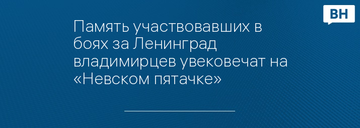 Память участвовавших в боях за Ленинград владимирцев увековечат на «Невском пятачке»