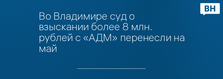 Во Владимире суд о взыскании более 8 млн. рублей с «АДМ» перенесли на май