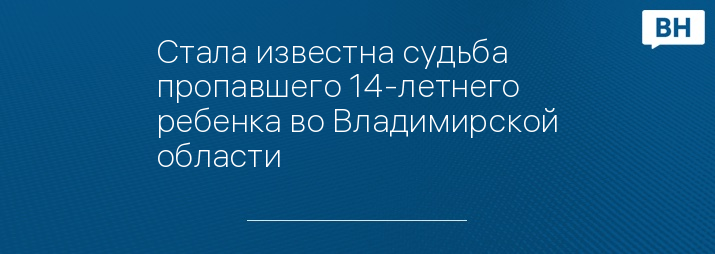 Стала известна судьба пропавшего 14-летнего ребенка во Владимирской области