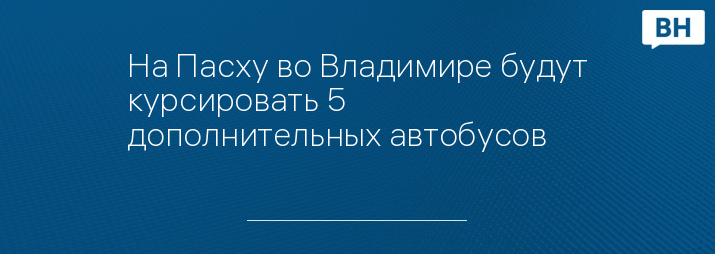 2 мая во Владимире будут организованы специальные автобусные пасхальные маршруты. Они будут следовать до городских кладбищ. Стоимость проезда до Байгуши составит 40 рублей, а до Улыбышево – 55 рублей. Отмечается, что перевозки жителей будут производиться автобусами большой вместимости.