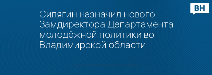 Сипягин назначил нового Замдиректора Департамента молодёжной политики во Владимирской области