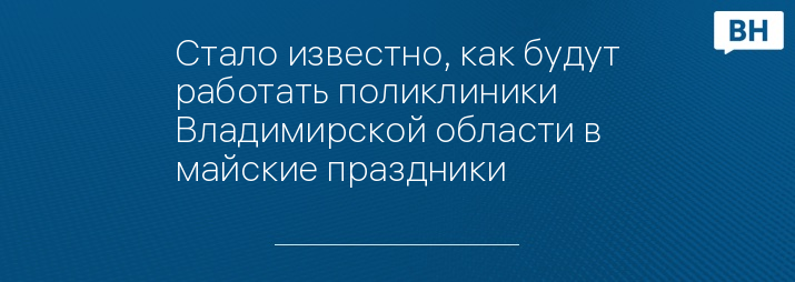 Стало известно, как будут работать поликлиники Владимирской области в майские праздники