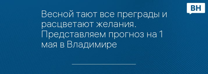 Весной тают все преграды и расцветают желания. Представляем прогноз на 1 мая в Владимире