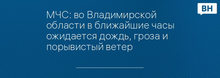 МЧС: во Владимирской области в ближайшие часы ожидается дождь, гроза и порывистый ветер