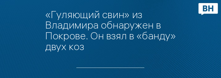 «Гуляющий свин» из Владимира обнаружен в Покрове. Он взял в «банду» двух коз