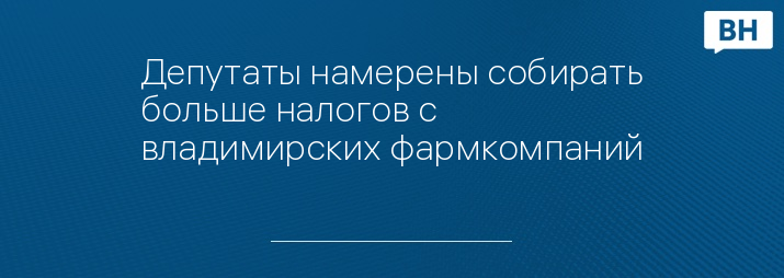 Депутаты намерены собирать больше налогов с владимирских фармкомпаний