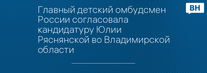 Главный детский омбудсмен России согласовала кандидатуру Юлии Ряснянской во Владимирской области