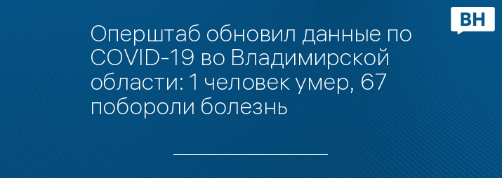 Оперштаб обновил данные по COVID-19 во Владимирской области: 1 человек умер, 67 побороли болезнь