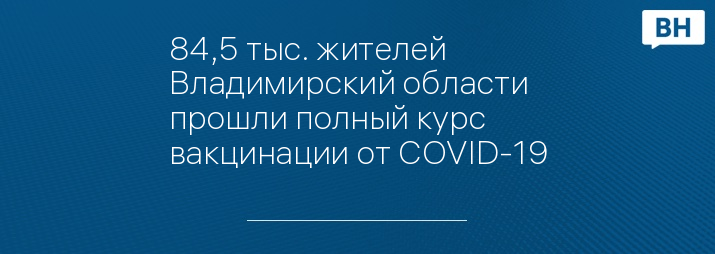84,5 тыс. жителей Владимирский области прошли полный курс вакцинации от COVID-19