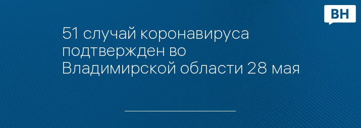 На территории Владимирской области за прошедшие сутки 28 мая 2021 года лабораторно подтвержден 51 случай заболевания новой коронавирусной инфекцией, сообщает региональный Роспотребнадзор.