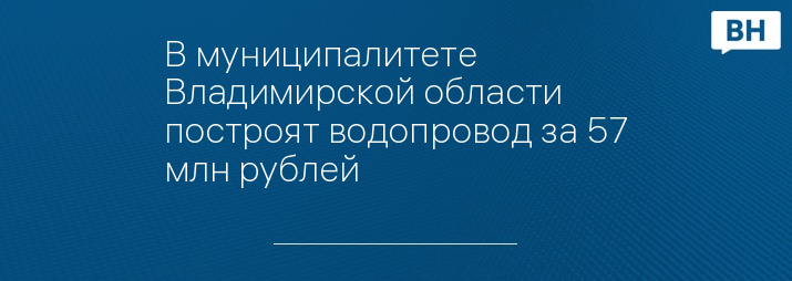 В муниципалитете Владимирской области построят водопровод за 57 млн рублей