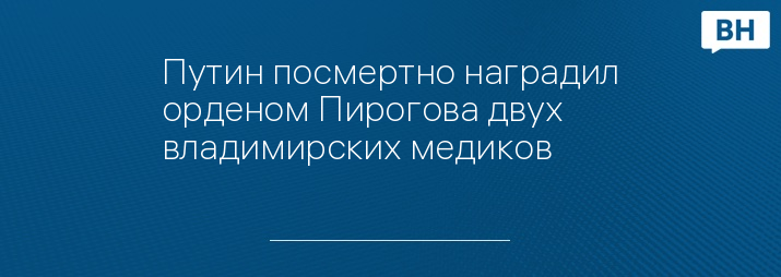 Путин посмертно наградил орденом Пирогова двух владимирских медиков