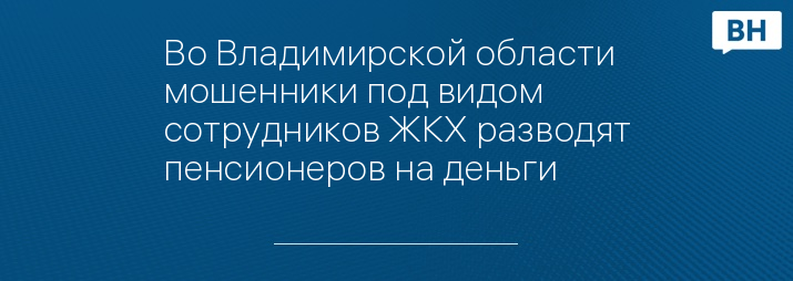 Во Владимирской области мошенники под видом сотрудников ЖКХ разводят пенсионеров на деньги