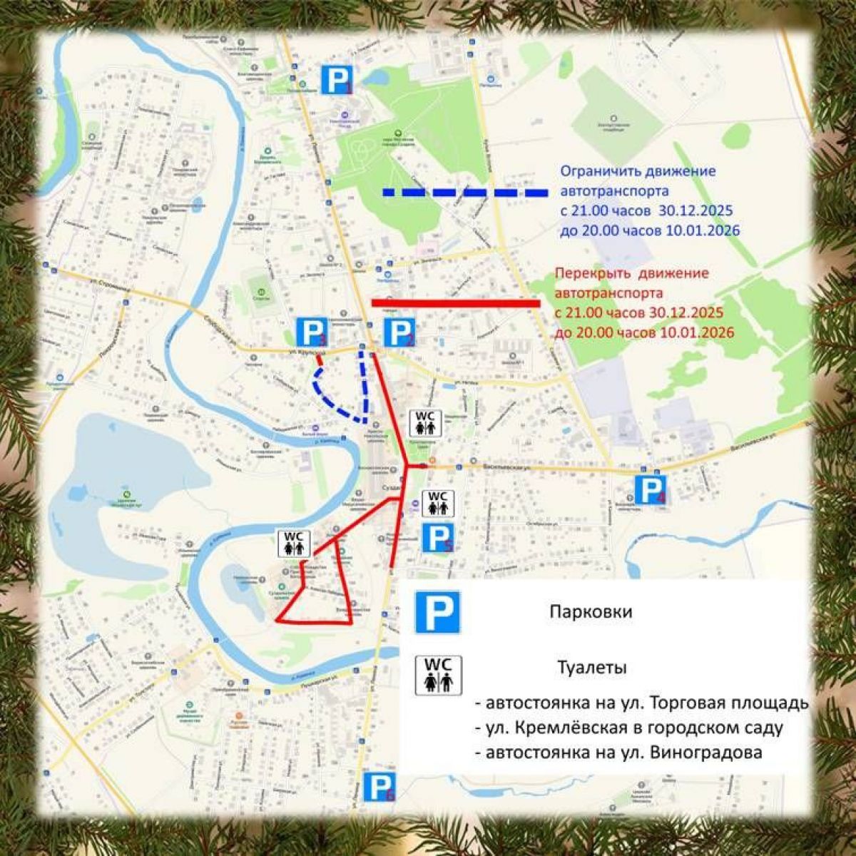 В Суздале на новогодние праздники перекроют дороги в центре города