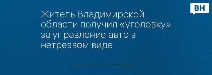 Житель Владимирской области получил «уголовку» за управление авто в нетрезвом виде