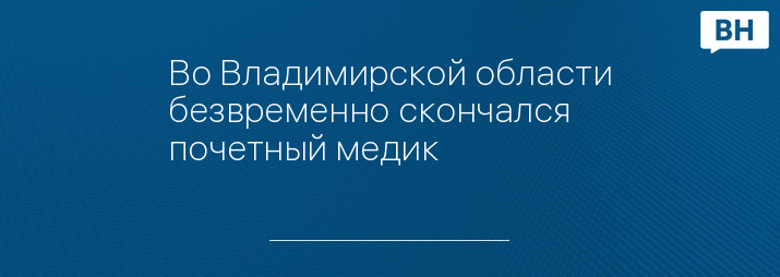 Во Владимирской области безвременно скончался почетный медик
