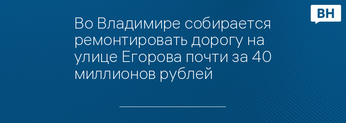 На сайте госзакупок на торги 13 августа был выставлен лот "Выполнение работ по ремонту автомобильной дороги по ул. Егорова (от ул. Добросельская до ул. Растопчина) в городе Владимире".