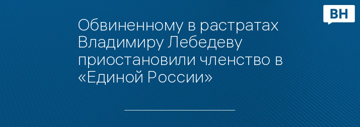 Обвиненному в растратах Владимиру Лебедеву приостановили членство в «Единой России»