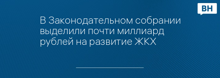 В Законодательном собрании выделили почти миллиард рублей на развитие ЖКХ