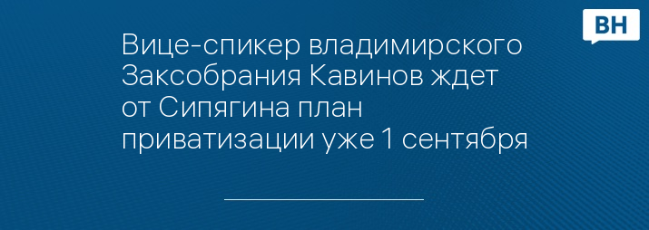 Вице-спикер владимирского Заксобрания Кавинов ждет от Сипягина план приватизации уже 1 сентября