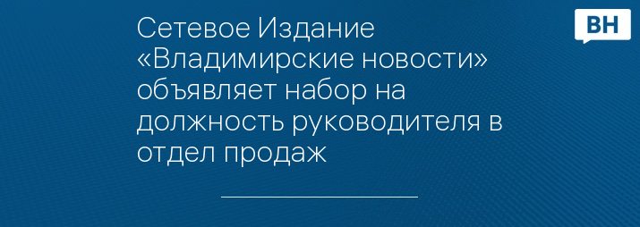 Сетевое Издание «Владимирские новости» объявляет набор на должность руководителя в отдел продаж