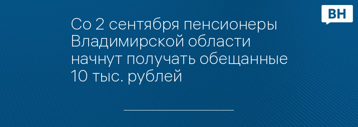 Со 2 сентября пенсионеры Владимирской области начнут получать обещанные 10 тыс. рублей