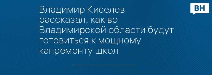 Владимир Киселев рассказал, как во Владимирской области будут готовиться к мощному капремонту школ