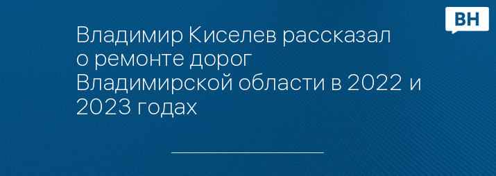 Владимир Киселев рассказал о ремонте дорог Владимирской области в 2022 и 2023 годах