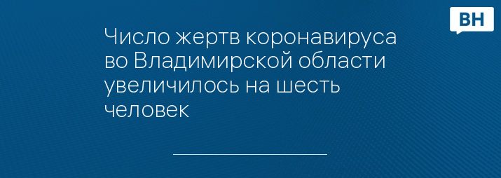 Число жертв коронавируса во Владимирской области увеличилось на шесть человек