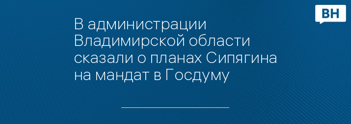 В администрации Владимирской области сказали о планах Сипягина на мандат в Госдуму