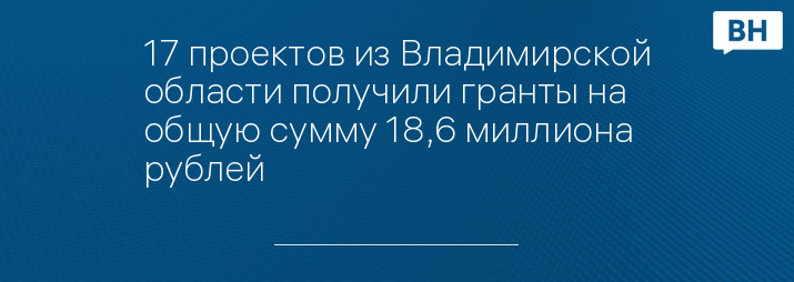 17 проектов из Владимирской области получили гранты на общую сумму 18,6 миллиона рублей