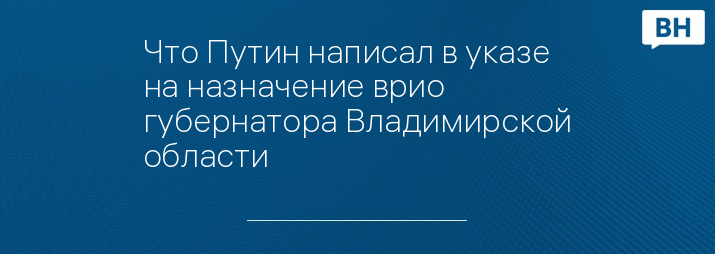 Что Путин написал в указе на назначение врио губернатора Владимирской области