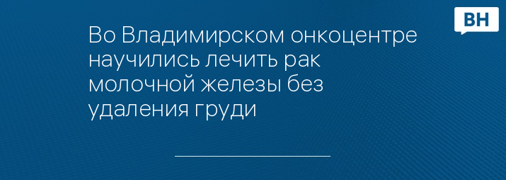 Во Владимирском онкоцентре научились лечить рак молочной железы без удаления груди