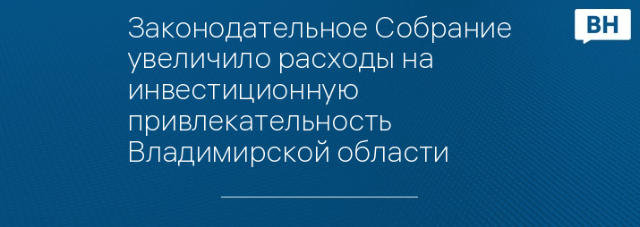 Законодательное Собрание увеличило расходы на инвестиционную привлекательность Владимирской области
