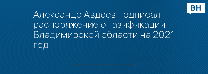 Александр Авдеев подписал распоряжение о газификации Владимирской области на 2021 год