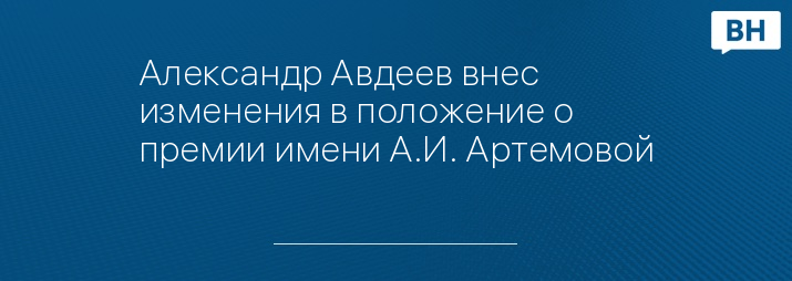 Александр Авдеев внес изменения в положение о премии имени А.И. Артемовой
