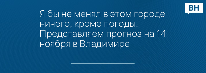 Я бы не менял в этом городе ничего, кроме погоды. Представляем прогноз на 14 ноября в Владимире