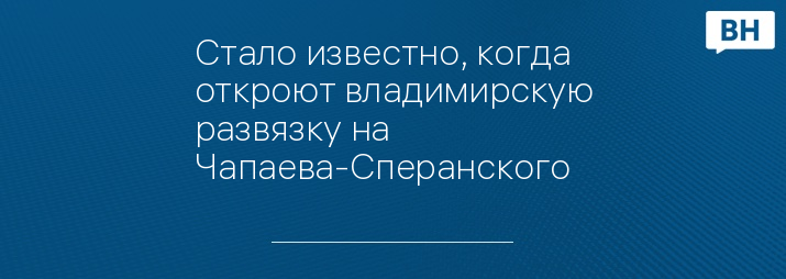 Стало известно, когда откроют владимирскую развязку на Чапаева-Сперанского