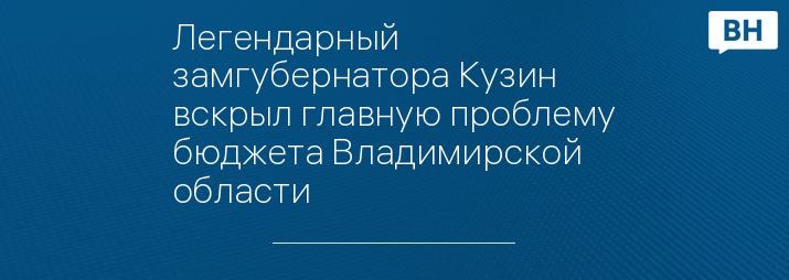 Легендарный замгубернатора Кузин вскрыл главную проблему бюджета Владимирской области