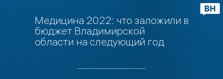 Медицина 2022: что заложили в бюджет Владимирской области на следующий год