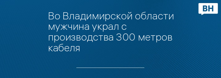 Во Владимирской области мужчина украл с производства 300 метров кабеля