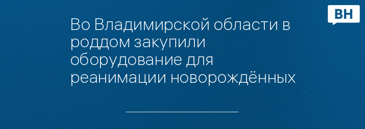 Во Владимирской области в роддом закупили оборудование для реанимации новорождённых
