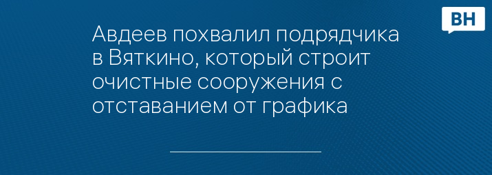 Авдеев похвалил подрядчика в Вяткино, который строит очистные сооружения с отставанием от графика