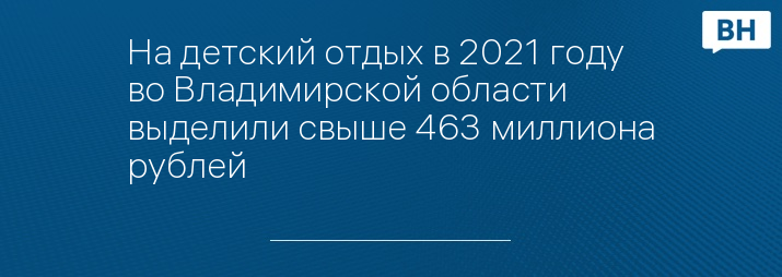 На детский отдых в 2021 году во Владимирской области выделили свыше 463 миллиона рублей